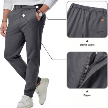 Men’s Dress Pants Slim Fit Stretch Khaki Pants Wrinkle Free