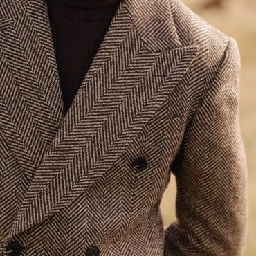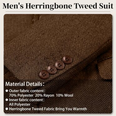 Men’s 2 Piece Tweed Herringbone Suit Double-Breasted Tuxedo Party Wedding Blazer and Pants Set