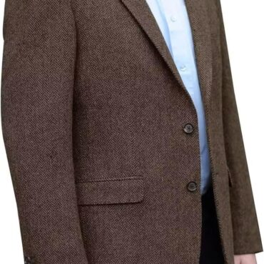 Men’s Tweed Blazer Jacket 2 Button Lightweight Herringbone Casual Sport Coat Wedding Groomsmen Prom Jackets