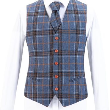Men Wool Tweed Checked Suit 3 Piece Wedding Party Blazer Vest Pants