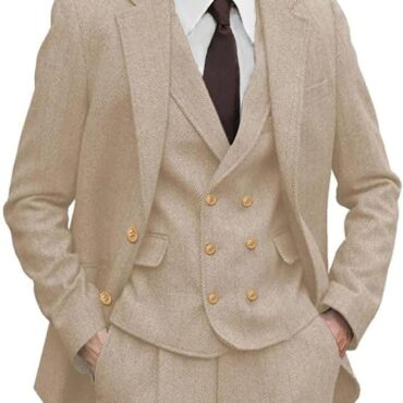 Men’s 2 Piece Tweed Herringbone Suit Double-Breasted Tuxedo Party Wedding Blazer and Pants Set